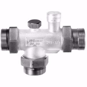 DatenblattDer JRGUMAT Thermomischer ist ein proportional regelnder Dreiwegmischer in offener Architektur. Die Mischwassertemperatur wird auf den Thermostaten A übertragen. Dieser vergleicht sie mit dem eingestellten Sollwert. Entspricht die Mischwassertemperatur nicht dem Sollwert, entsteht im Thermostat A eine Volumenänderung. Dabei wird der Ventilschieber B über den Bolzen C geregelt, bis die Mischwassertemperatur mit dem Sollwert übereinstimmt.Die Armatur kann lediglich das Brauchwasser bei Bezug mischen. Funktionen wie Rückflussverhinderung, Absperrung oder die Regulierung des Zirkulationsvolumenstroms können nicht durch den JRGUMAT Thermomischer übernommen werden. Gemäss den Einbauschemen sind entsprechende Armaturen einzubauen. Werkstoff: Rotguss