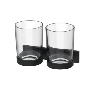 SIGNA Doppelglashalter schwarz matt, mit Klarglas, Montage Adesio zum Kleben oder Bohren, inkl. Befestigungsmaterial (ohne Klebstoff), Füllmenge Klebstoff: 1.3 ml SikaFast