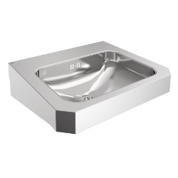 Einzelwaschtisch, für Wandmontage, Chromnickelstahl, Oberfläche seidenmatt, Materialstärke 1,0 mm, fugenlos eingeschweisstes Becken, Becken poliert, rechteckige Waschtischform, mit Armaturenbank 105 mm (T), ohne Armaturenbohrung, mit Überlauf, Stopfenab- und Überl aufgarnitur G 1 1/4 B, Ablauf hinten mittig, Frontschürze links und rechts unter 45° abgeschrägt, mit eingeschweissten Wandkonsolen, Befestigung laut EN 31. Inklusive Schrauben und Dübel. Abmessungen 500 x 150 x 446 mm (B x H x T) Muldenmaße 400 x 141 x 291 mm (B x H x T)