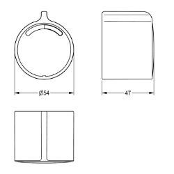 Temperaturwahlgriff aus Metall, mit Steg, für F3E-Therm Thermostatbatterie, komplett mit Abdeckplättchen.