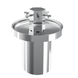 Rundwaschtisch für 6 Personen, bodenstehend, Chromnickelstahl, Materialstärke 1,5 mm, Oberfläche seidenmatt, inklusive 6 Selbstschlu ss-Wandventilen für den Anschluss an vorgemischtes Warmwasser, vormontiert, Zu- / Ablauf von unten, seitliche Revisionsklappe mit Sicherheitsschrauben befestigt. Hinweis: Wasserdruck von mindestens 3.5 bar nötig! mit 6 Selbstschluss-Wandventilen Abmessungen 1000 x 1205 x 1000 mm (B x H x T)