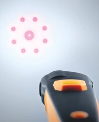 Das Infrarot-Temperaturmessgerät testo 805i fungiert in Kombination mit einem Smartphone oder Tablet als kompaktes IR-Thermometer für Wandtemperaturen sowie Sicherungs- und Komponententemperaturen von Klimasystemen. Dabei wird die Mess-Stelle mit einem Laserkreis aus acht Punkten übersichtlich markiert – damit Sie immer ganz genau wissen, wo Sie messen.
