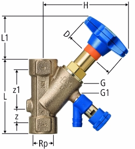 | Rp | G | G1 | z | z1 | L | L1 | H | D | Kvs | Grösse | Art.-Nr. | VE | suissetec |