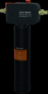 Innovatives Gehäuse zum waagrechten Anschluss an die Rohrleitung, aus hochwertigem Kunststoff mit Isolierschalen aus EPP. Behälteranbindung unten mit Außengewinde zum Anschluss von JUDO PURE Vollentsalzungspatronen oder JUDO Adapter für bodenstehende JUDO PURE Vollentsalzungspatronen mit hoher Kapazität. Mit integriertem Turbinenwasserzähler zur Erfassung der Füll- und Ergänzungswassermenge, Leitfähigkeitsmesssonde zur Messung der Produktwasserleitfähigkeit. Folientastatur zur Eingabe von Patronentyp, Rohwasserhärte und gewünschter max. Leitfähigkeit, LCD-Display zur Anzeige der Restkapazität, Produktwasserleitfähigkeit und Meldung bei Kapazitätsüberschreitung, Ausgang zur Ansteuerung eines externen Melderelais. Spannungsversorgung über 2 Stück Microbatterien 1,5 V (AAA), ausgangsseitiger Absperrkugelhahn und Probenahmeventil. Alle Materialien sind geeignet für den Einsatz im entsalzten Wasser.