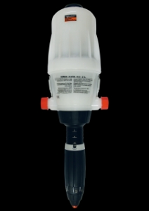 Mechanisch/hydraulische Dosierpumpe zur mengenproportionalen Zugabe von mind. 7 l/m³ JUDO JLS-DUO bei der Standdesinfektion nach DVGW-Arbeitsblatt W 557; stromlose Proportionaldosierpumpe; komplette Einheit chlordioxidbeständig mit Saugschlauch.